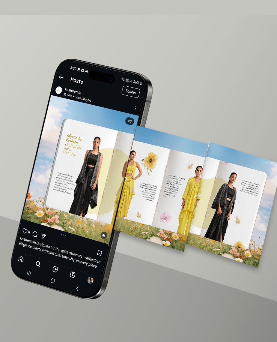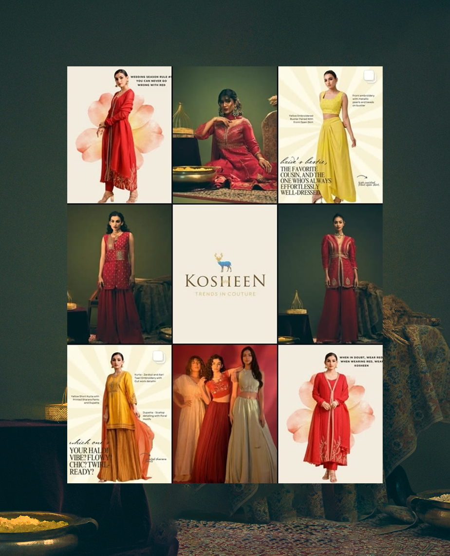 Rich visuals, Indian warmth, and thoughtful narratives build recall and relatability — reflecting Kosheen’s fusion of heritage and modern design sensibilities.