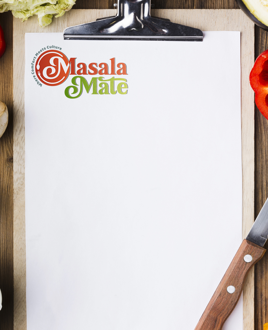 A warm and earthy color palette was selected to evoke feelings of comfort and authenticity, aligning with the brand's culinary focus. The typography combines modern and traditional styles, reflecting the fusion of cultures inherent in Masala Mate's offerings.