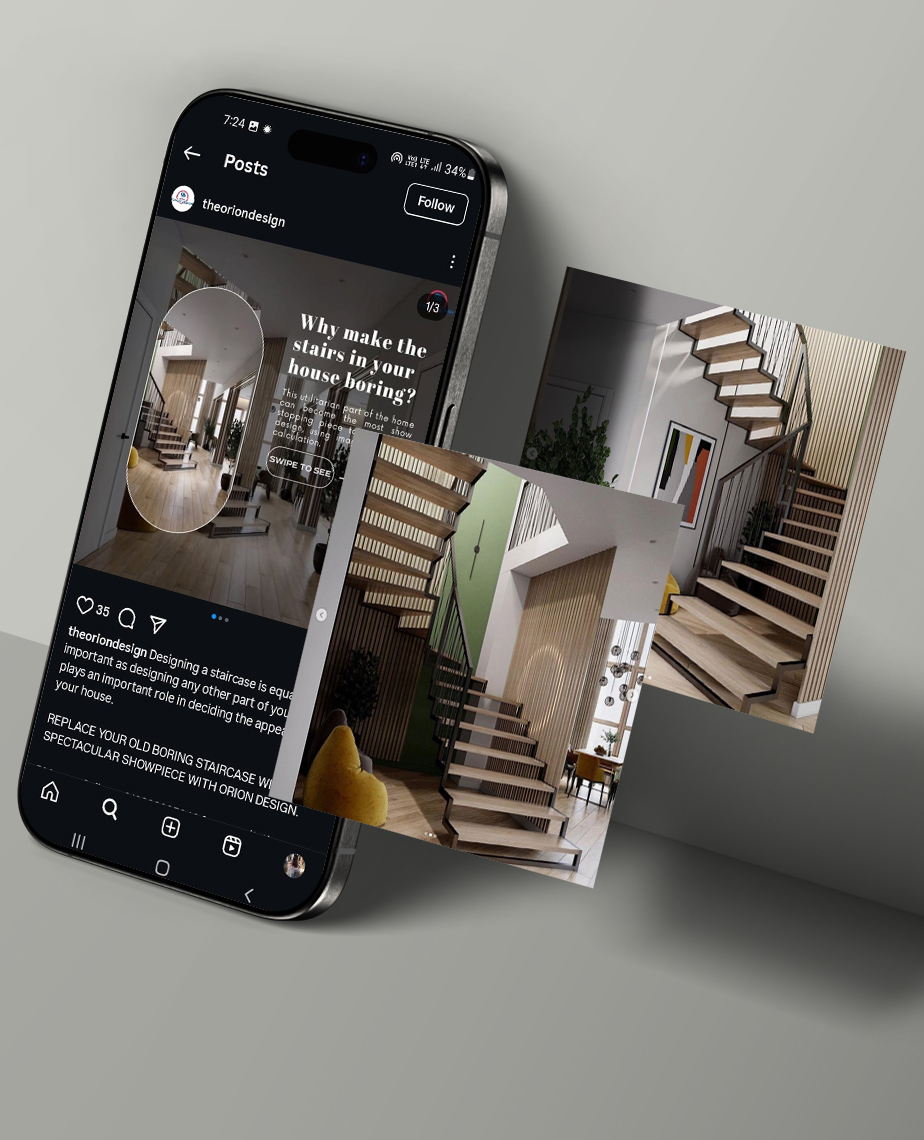 For The Orion Design, every project tells a story — and our social strategy reflects that philosophy. A refined blend of aesthetics and storytelling that highlights the brand’s expertise in interior design.