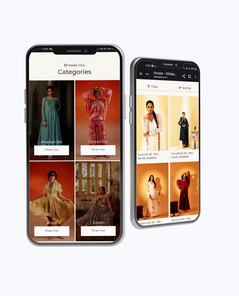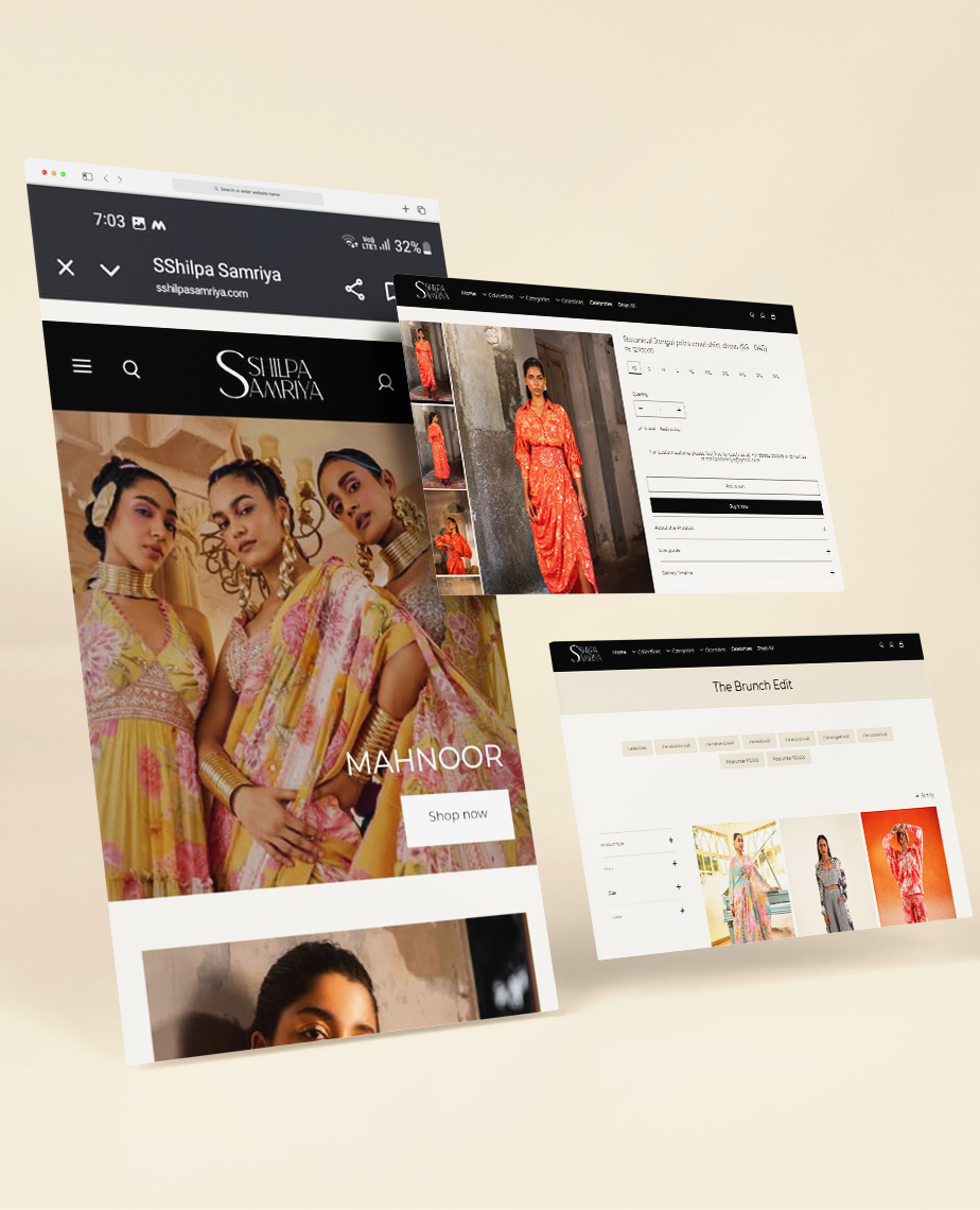 We crafted an elegant digital presence for Shilpa Samriya — a label known for its handcrafted luxury and timeless silhouettes. The goal was to translate the brand’s couture grace into a seamless online experience.