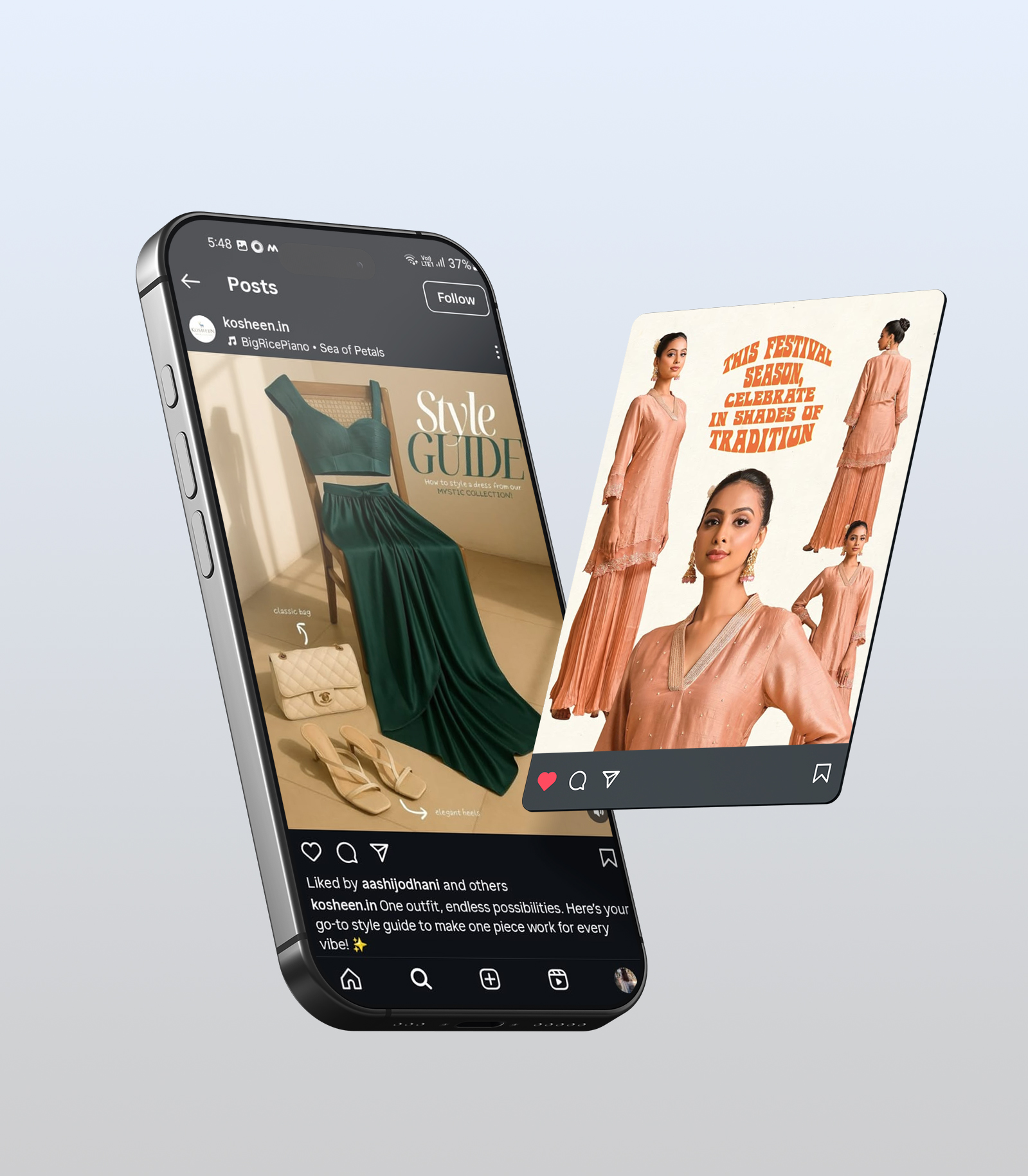 Rich visuals, Indian warmth, and thoughtful narratives build recall and relatability — reflecting Kosheen’s fusion of heritage and modern design sensibilities.