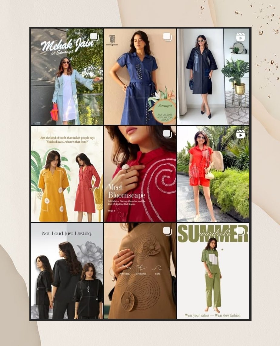 The feed mirrors the brand’s couture essence — elegant, timeless, and rooted in detail.