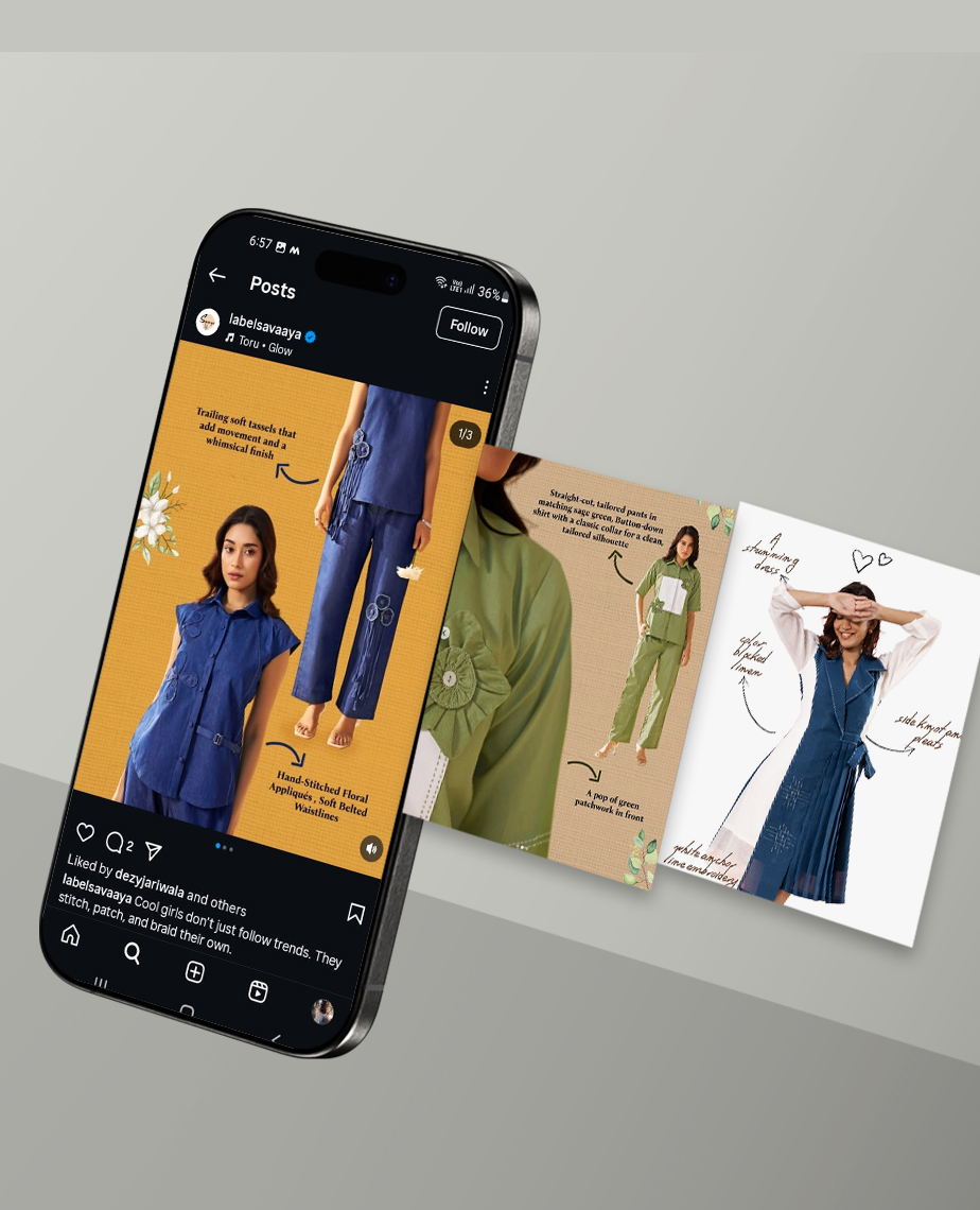 Highlighted textures and intricate handwork through artistic close-up reels that reflect couture precision and artistry.