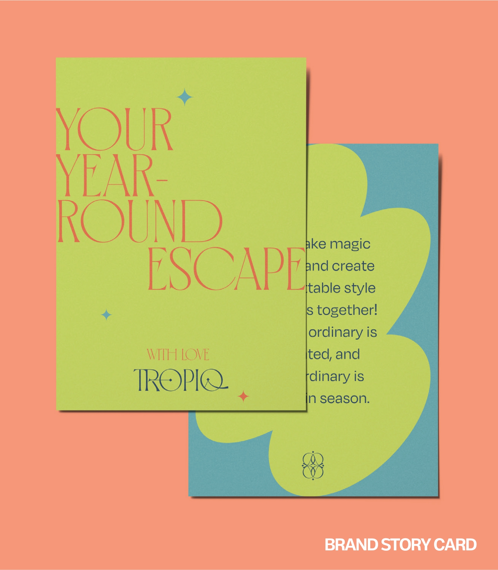 We created a compact, beautifully designed brand story card that introduces customers to the Tropiq mindset — free-spirited, confident, and effortlessly cool.